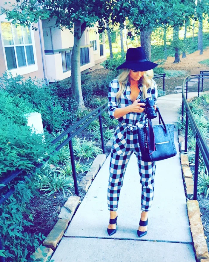 TASSEL CHOKER / FELT HAT / SUNGLASSES / SWEATER / DENIM SHORTS / OTK BOOTS / CROSS-BODY BAG / the BEAUTY BANK c/o Fifth & Ninth / NECKLACE / PAVE RING